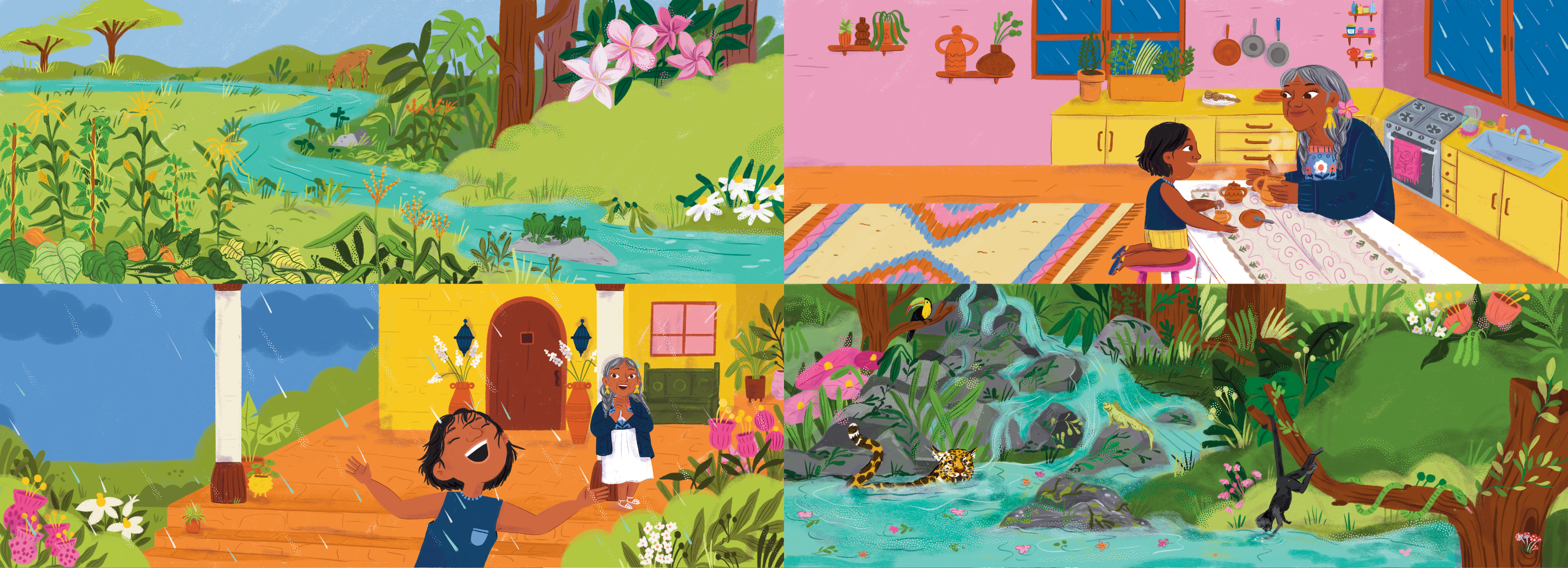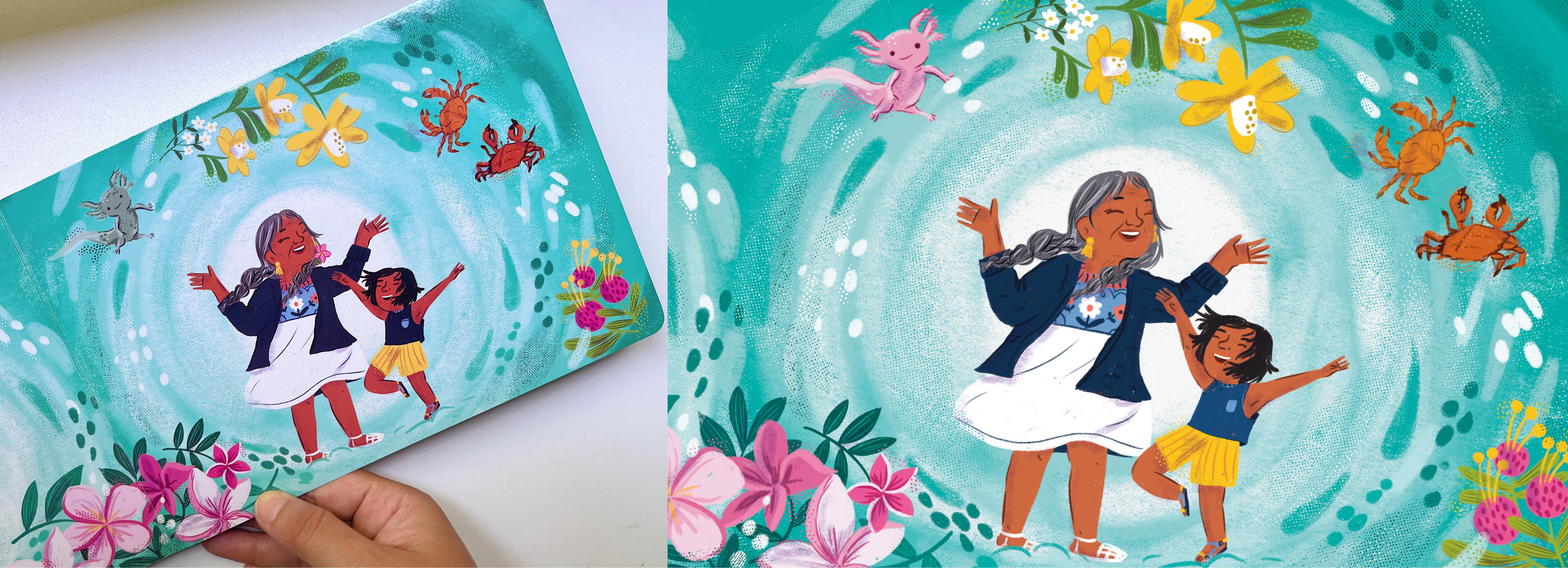 The second book in the series I illustrated for Penguin is When Water Flows, a children’s book that explores the water cycle through tender and playful prose, blending Spanish words, and highlighting the importance of water in our habitat